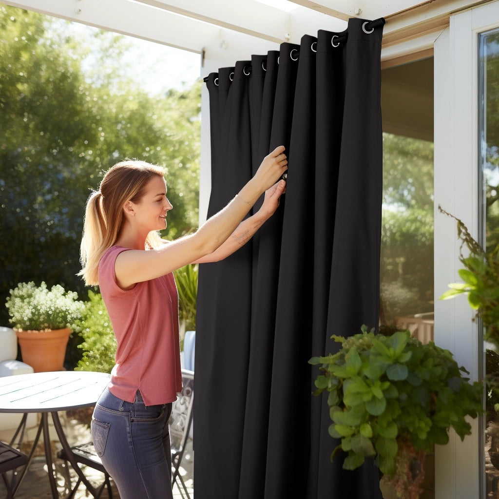 Black Outdoor Curtains - Triple-Weave Outdoor Blackout Curtain With Weights - Curtains for Balcony, Gazebo, Porch, Pergola