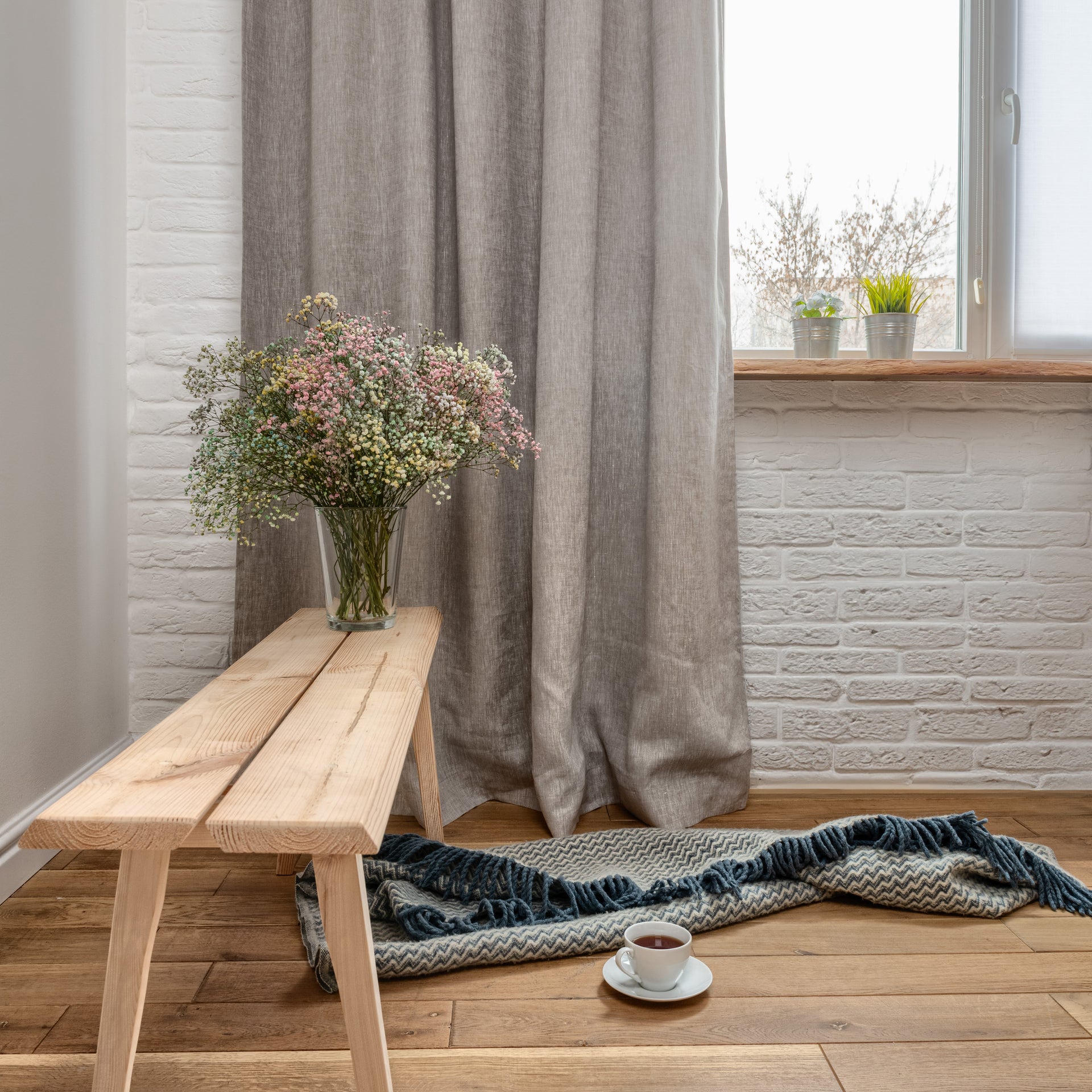 Tab Top Linen Curtain Panel with Blackout Lining - 124, 138 or 250 cm Width, Custom Drop - Natural Linen Oatmeal/White/Grey Colours