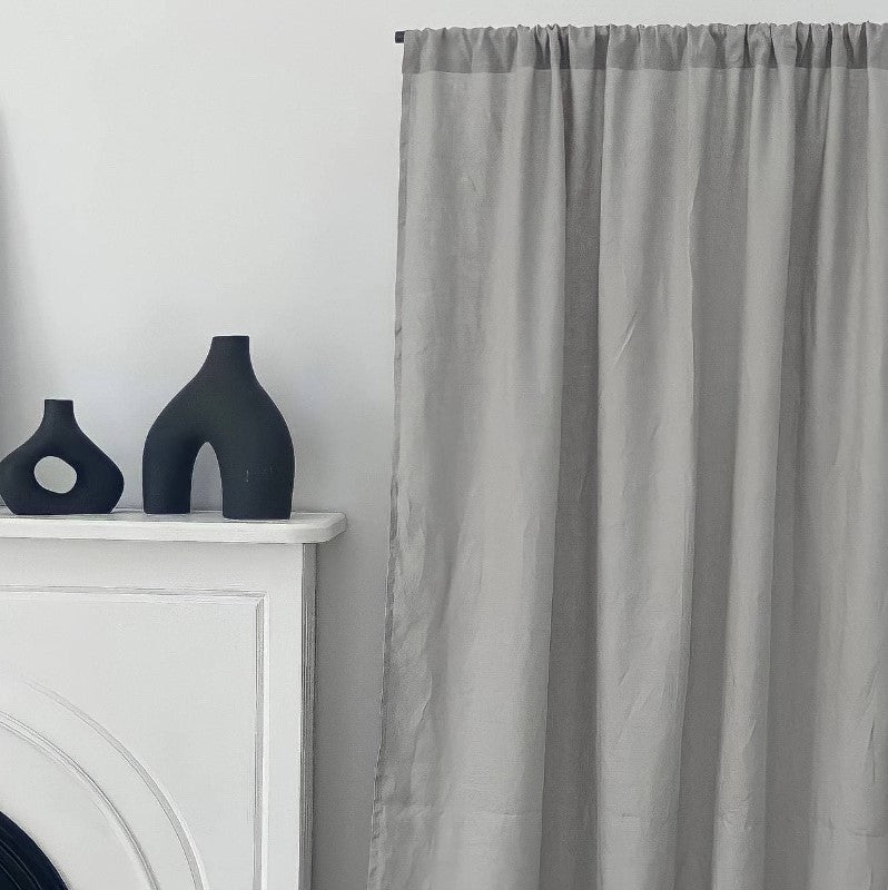 Grey Soundproof Linen Curtain With Rod Pocket - Custom Width and Length