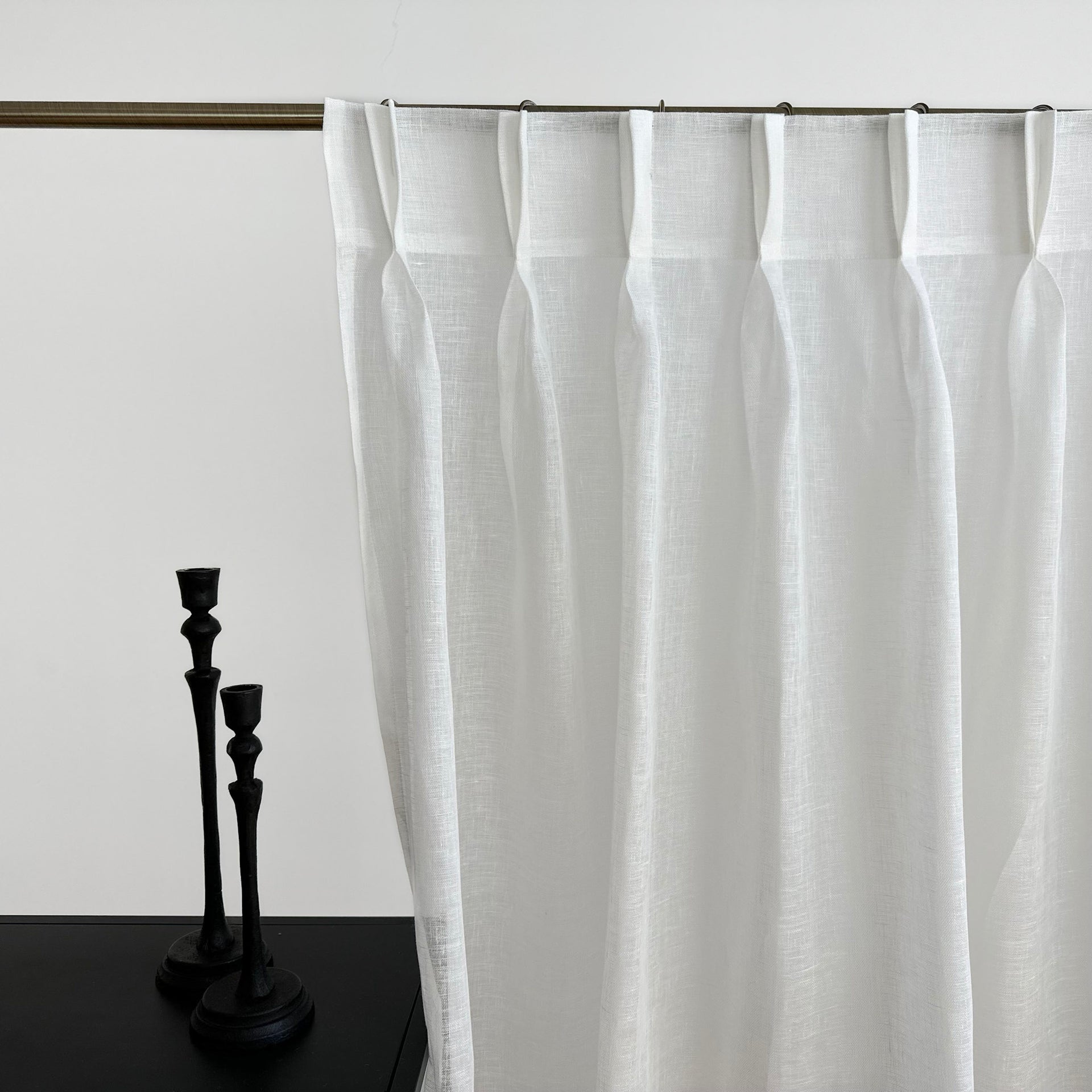 Linen Sheer White Curtain - Pole Pocket Window Drapery - Bespoke Sizes Available - Beige and White Colours