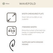 *Finished width, once the curtain is formed into waves, is approximately half the flat width.