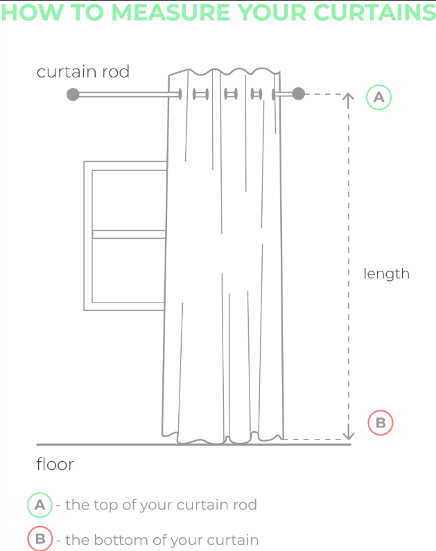 Measure from the top of the curtain rod to the place where you wish to see the bottom of your curtain. - Measuring for the width: