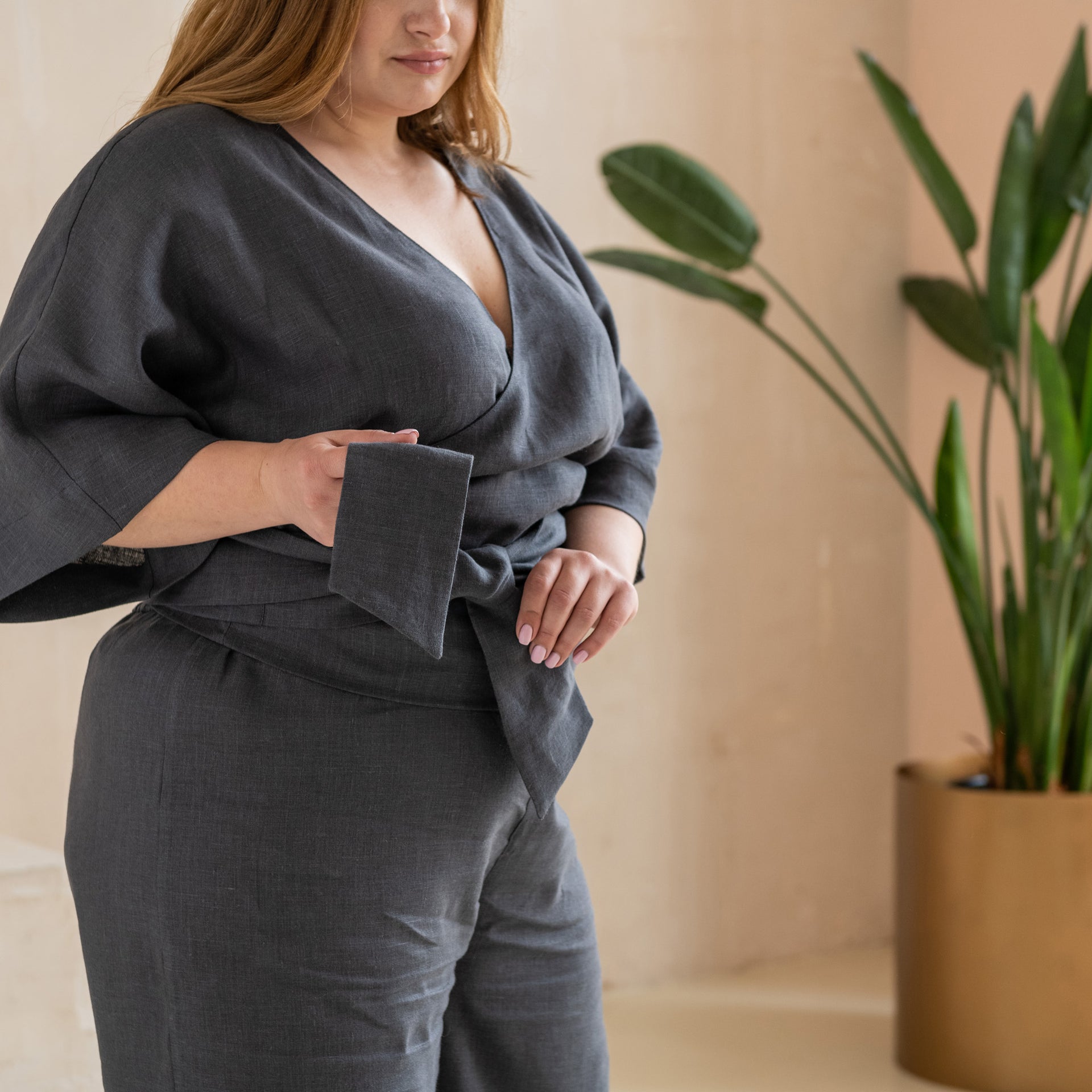 Kimono Style Linen Pants and Blouse – Plus Size Women Clothing