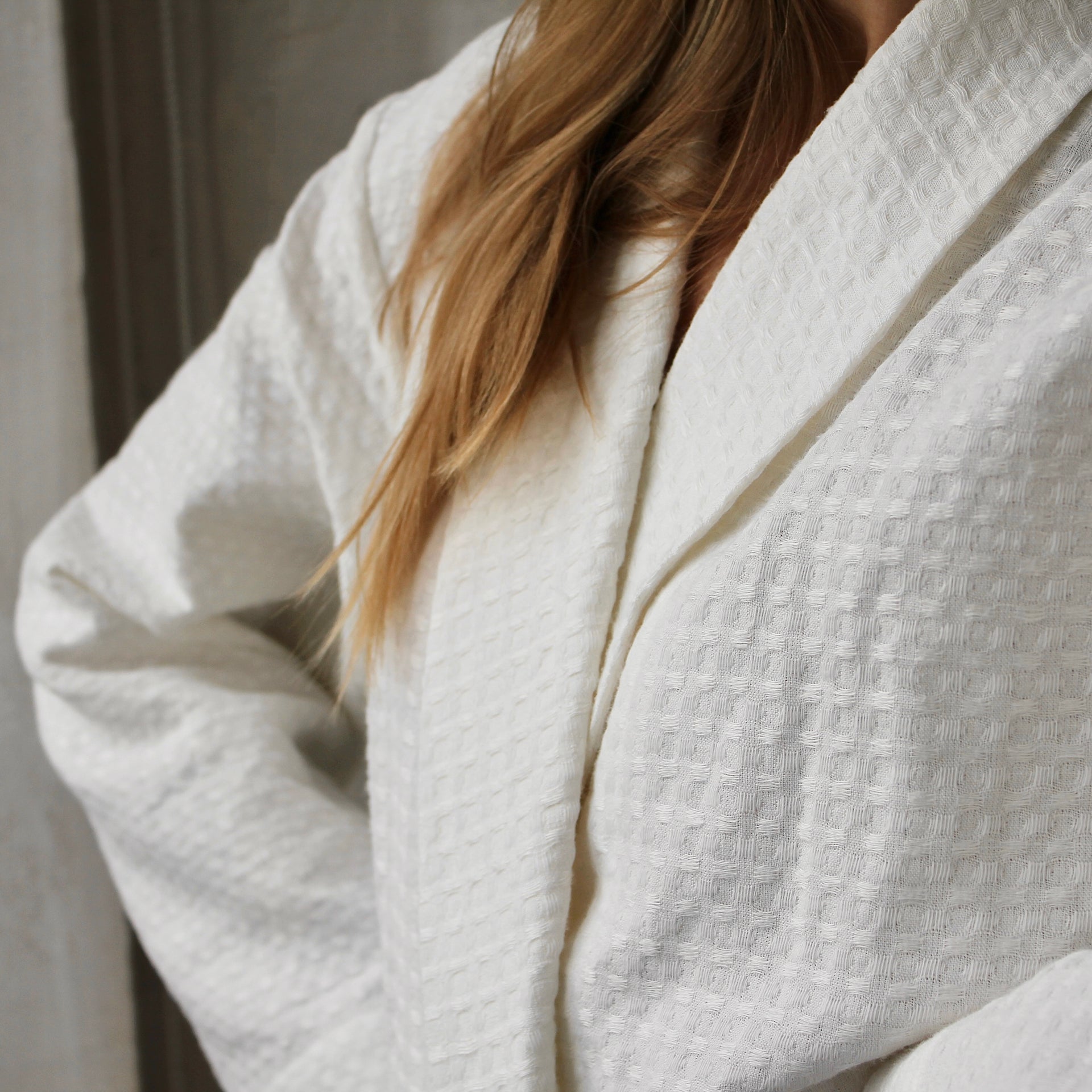 Waffle Linen Robe With a Belt