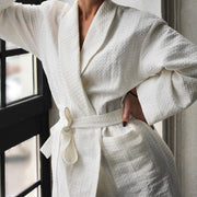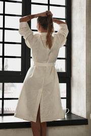 Linen is known for its excellent absorbing qualities making this robe perfect garment after a shower or a swim.