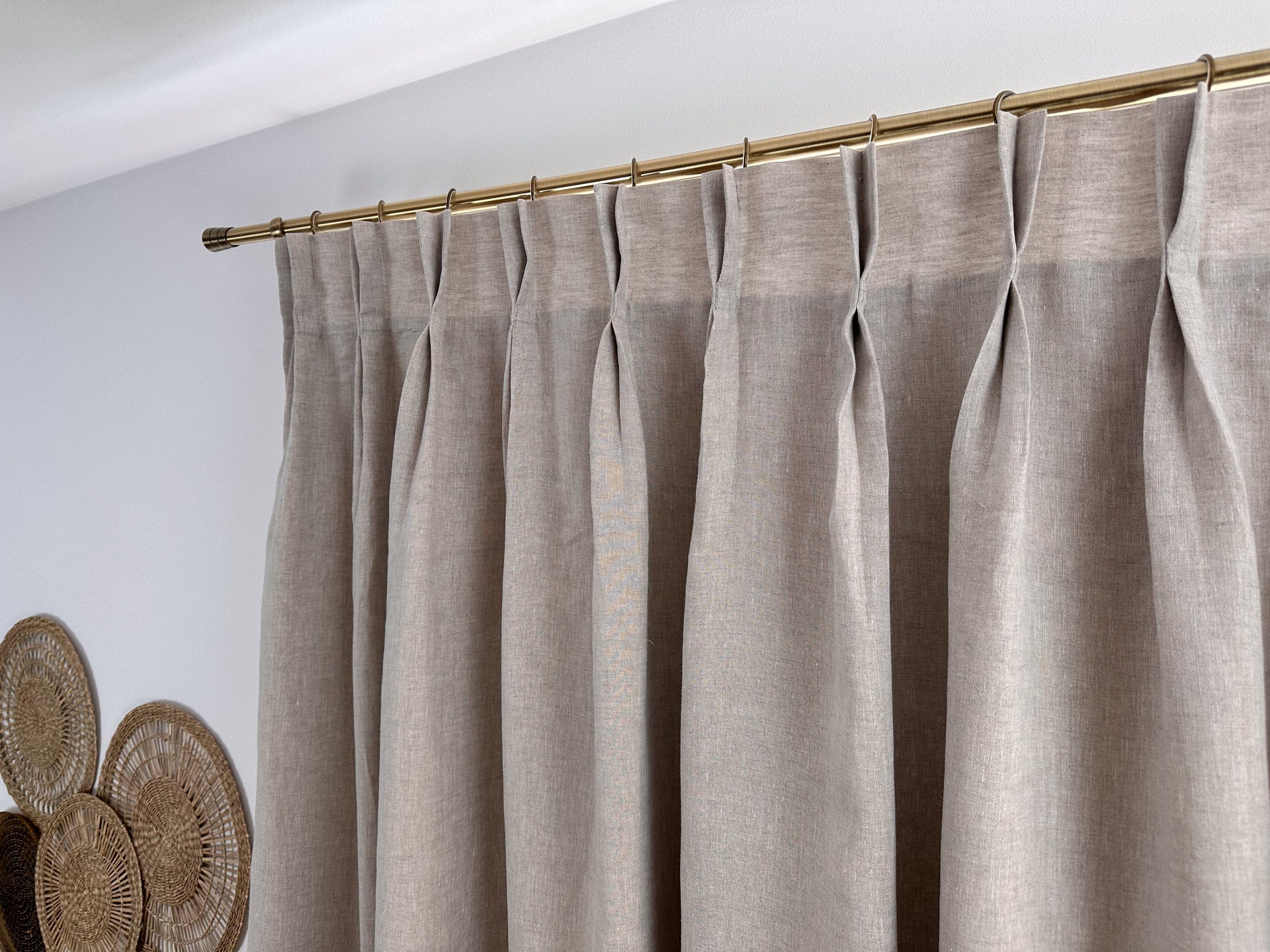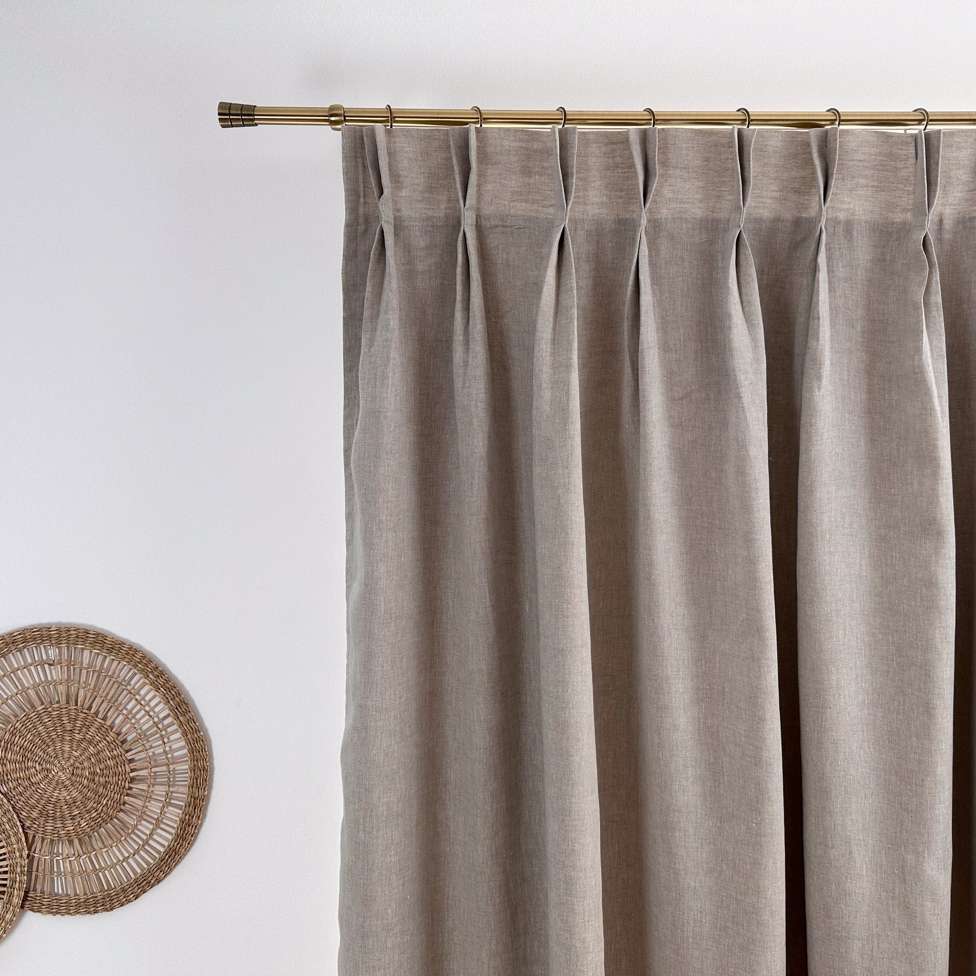 Double Pinch Pleat Linen Curtain Panel for Bedroom with Cotton or Blackout Lining - Dutch Pleat for Rings and Hooks