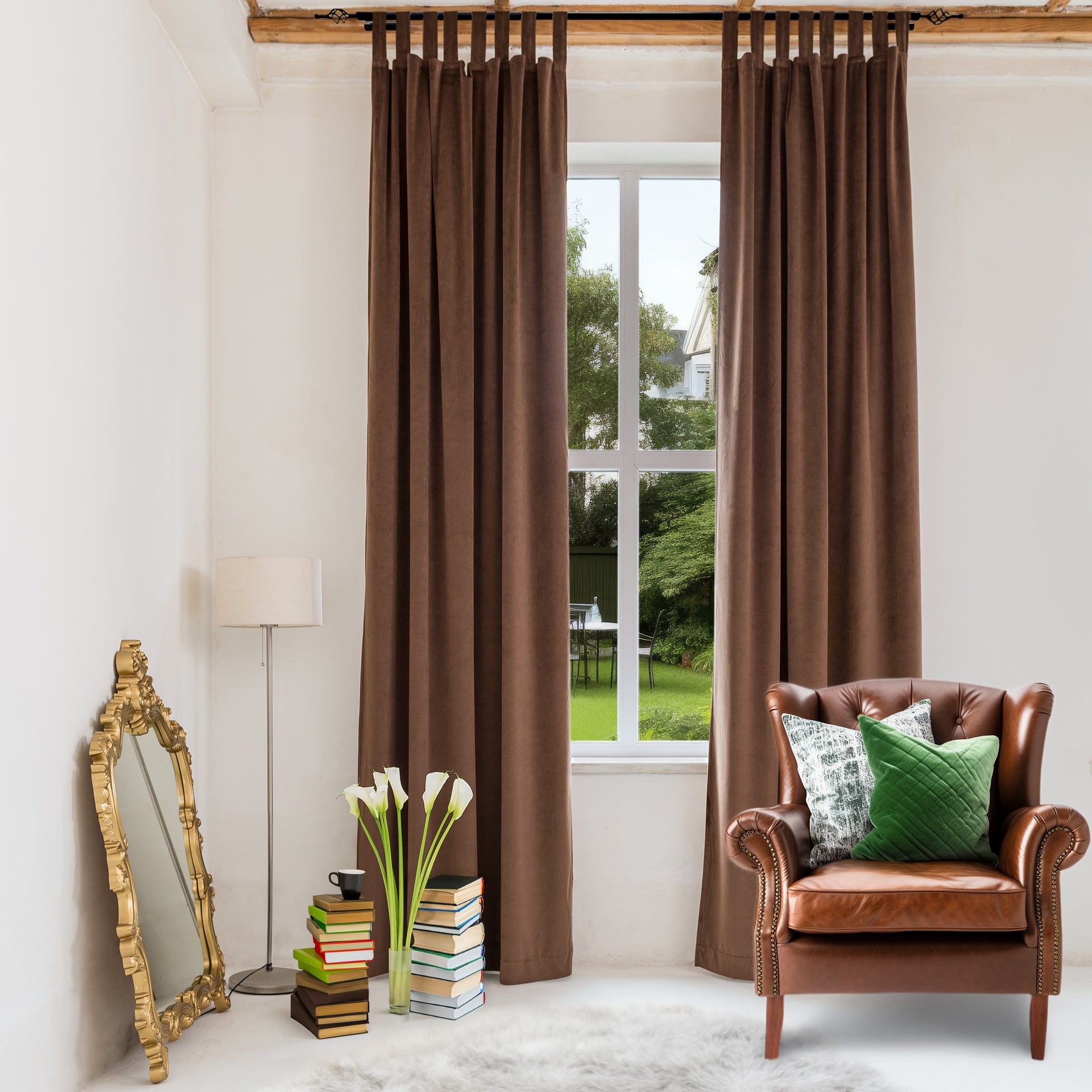 Chocolate Brown Velvet Tab Top Curtains – Unlined or With Blackout, Thermal or Soundproof Lining