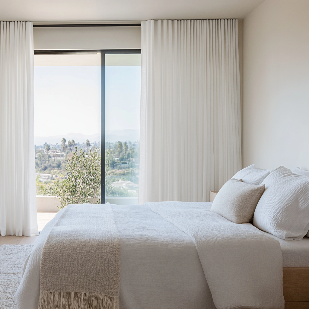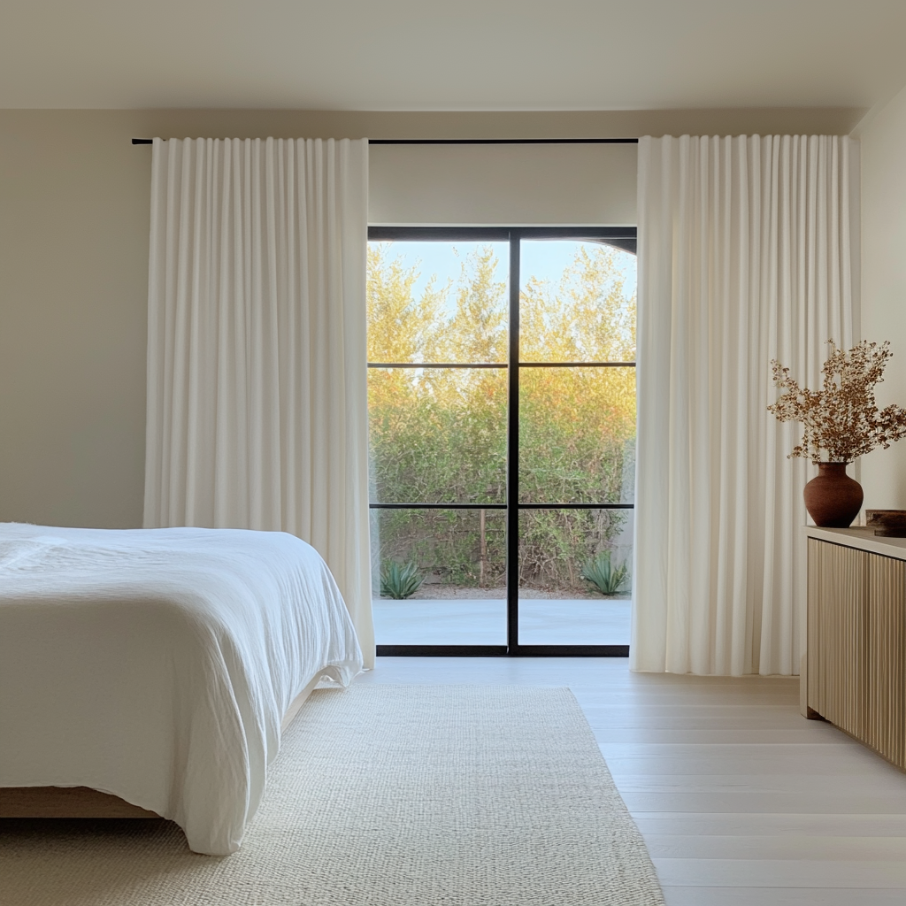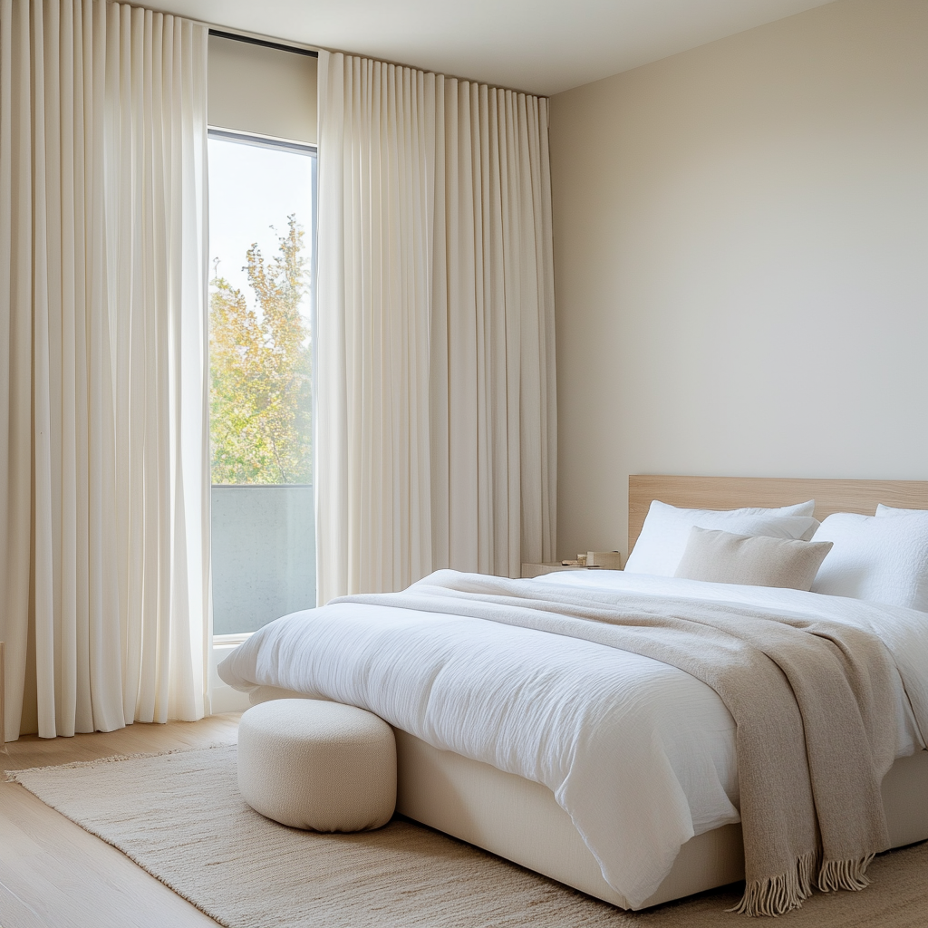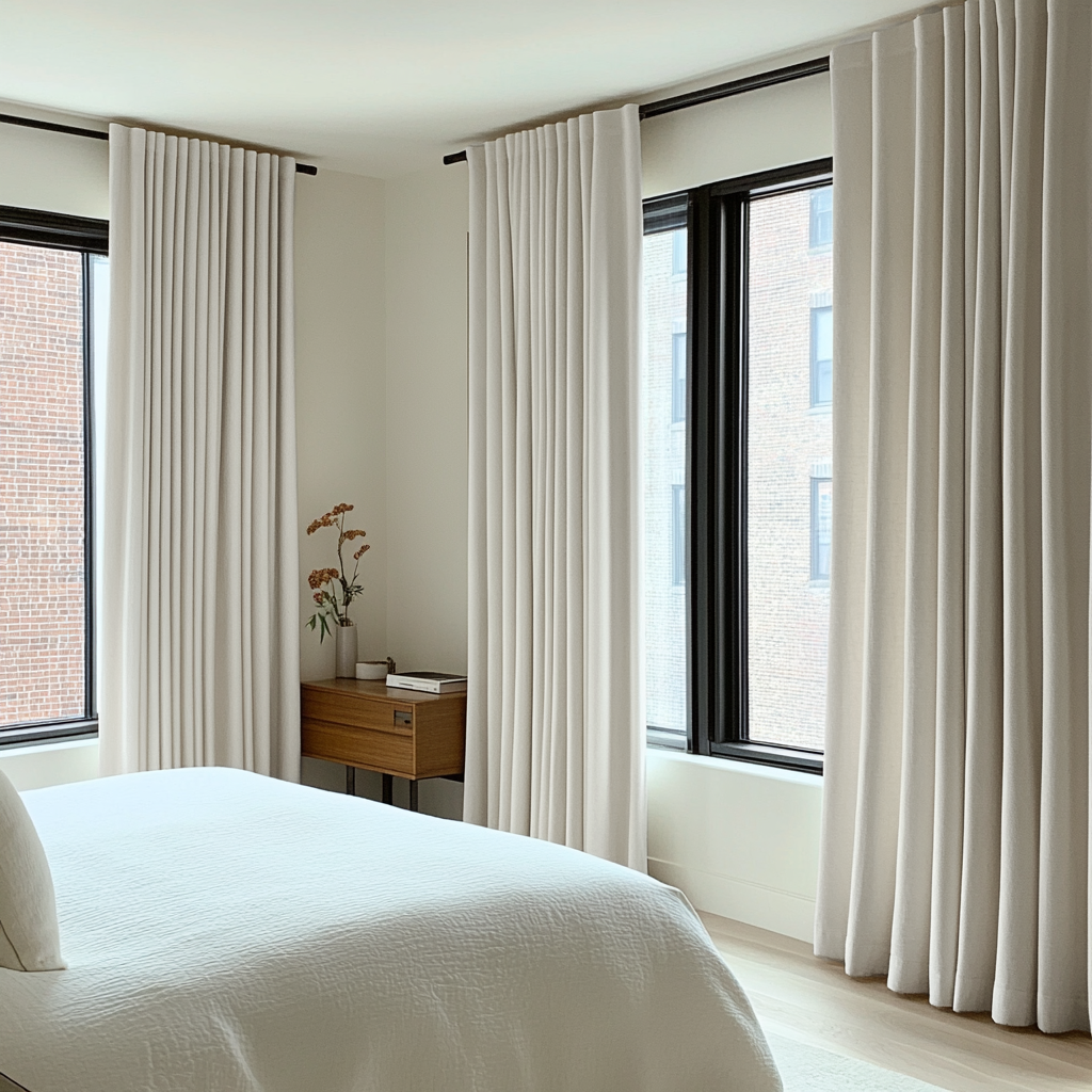 Off-White Ivory Bedroom Curtains - Back Tab Heavyweight Linen Curtain Panel - Unlined, Cotton or Blackout Lining