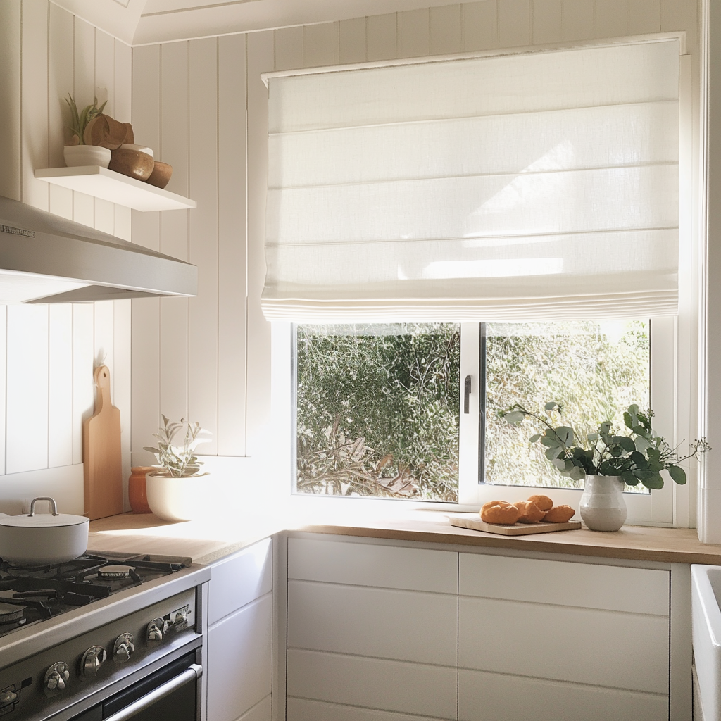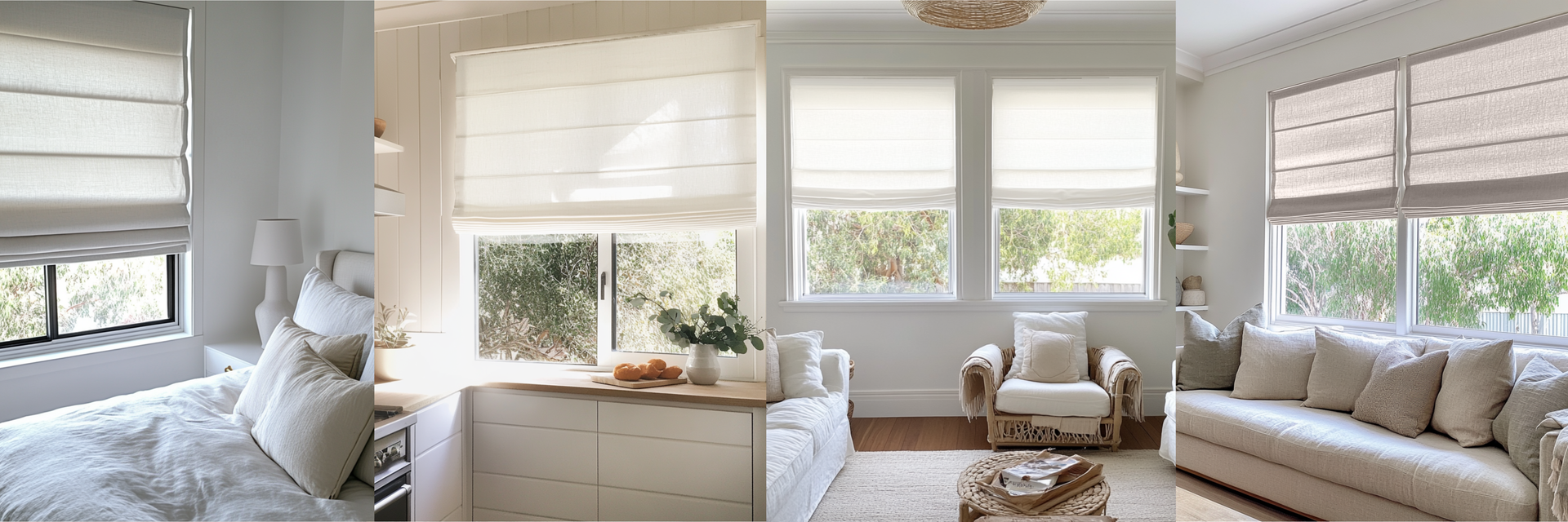 Custom Linen Roman Blinds - Unlined Sheer or with Cotton, Blockout or Thermal Lining - 24 Colours - Cord Cleats Available