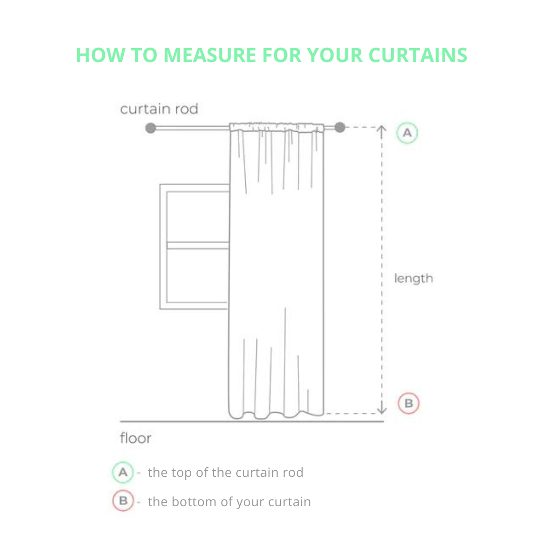 Measure from the top of the curtain rod to the place where you wish to see the bottom of your curtain. - Measuring for the width: